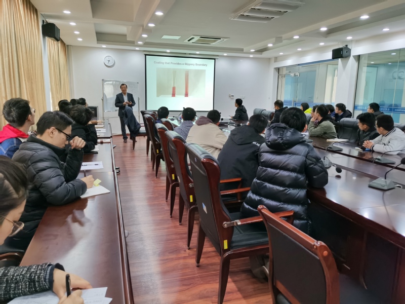 报告介绍了两个方面的内容,一是介绍一种透明全向性NP-GLIDE涂层,最强的涂层具有超过9H的铅笔硬度,同时又是透明的和柔性的。二是介绍了使用Janus过滤器实现乳化油与水的高通量分离,该过滤器将乳化油液滴聚结,然后选择性地将聚结油与水分离。报告内容丰富、精彩生动,报告会由易敏教授主持。会后,刘国军与我校师生做了深入的交流和探讨及补充和解答,并在李基东博士的陪同下参观了机械结构力学及控制国家重点实验室。