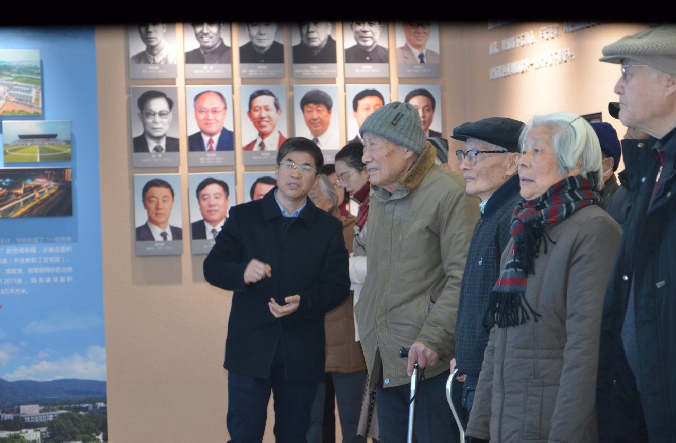 集体学习后,老干部们乘车前往荟萃楼参观校史馆。在档案馆王伟馆长亲自带领和讲解员的引导下,老干部们认真倾听校史讲解,驻足阅览各项陈设与展品,仔细端详曾经熟悉的场景和人物,一起重温学校六十多年来不断发展壮大的风雨历程。大家听得认真,看得仔细,问得详尽,一张张老照片、一个个熟悉的名字、一段段发展历程,唤起了老干部对峥嵘岁月的无限回忆。