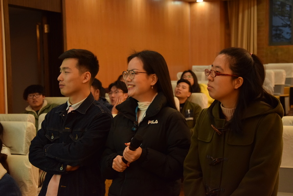 本次团日活动以纪念“一二·九”运动84周年为契机,将习近平新时代中国特色社会主义思想的相关论述、近代历史知识、爱国诗歌等丰富内容融入赛题,用“PK”竞赛紧张激烈的形式,引导青年们共同回顾历史,牢记使命。比赛共设三个环节,分为必答环节、抢答环节与决赛环节。必答环节中,选手们均表现优秀,势均力敌,最终六个小组成功晋级。第二环节,两组轮流作答,各组选手实力不相上下,比分胶着。进入最后的决赛,现场的气氛达到了高潮,选手们勇敢挑战高分值难题,经历一番激烈的角逐后,本场比赛的一、二、三等奖得主最终揭晓。人文学院团委书记卢一亭为获胜队伍颁发证书。在紧张的答题环节外,竞赛还增设观众参与爱国主义歌曲接唱环节,在场观众踊跃参与,唱响红色经典,赢得掌声不断。