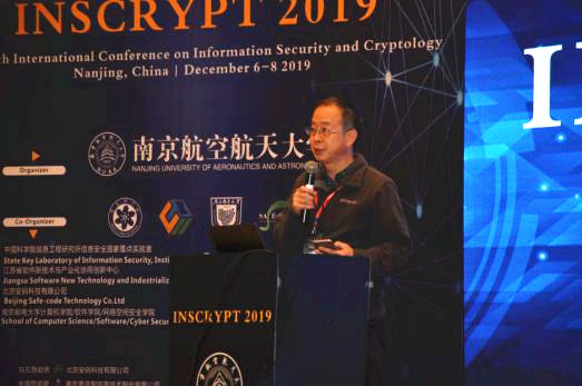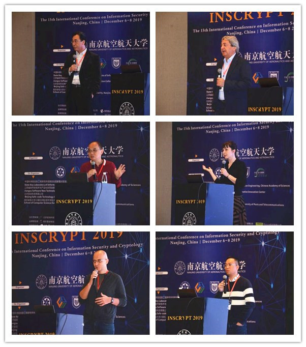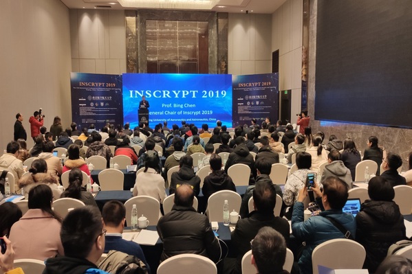 2019年12月6日至8日,由国际密码协会(IACR)、中国科学院信息安全国家重点实验室和南京航空航天大学联合主办的第十五届信息安全与密码学国际会议(Inscrypt 2019)在南京召开。IEEE Fellow、中国自动化学会会士、副校长姜斌和大会名誉主席、中科院林东岱出席开幕式并致辞,副校长、大会名誉主席黄志球出席颁奖典礼,并为最佳论文获奖者颁奖。会议得到了国内外密码学及信息安全领域专家学者的积极响应,来自中国、美国、法国、日本、印度、新加坡、澳大利亚等国家的200余名代表出席了本次盛会。开幕式由计算机科学与技术学院/人工智能学院院长、大会主席陈兵主持。
