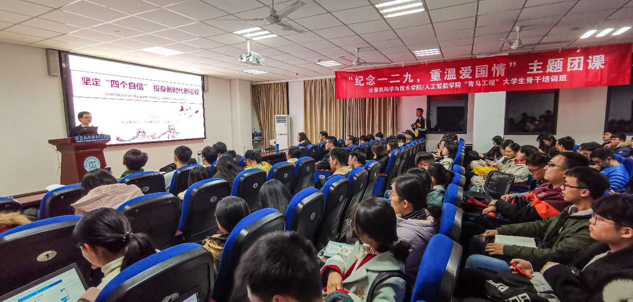 12月9日晚,计算机科学与技术学院/人工智能学院在学院113报告厅举办了“纪念一二九,重温爱国情”主题团课,由南京师范大学地理科学学院团委副书记、辅导员沈晓海主讲。学院党委副书记管祎、辅导员代表及170余名“青马工程”培训班学员参加了主题团课。团课由学院团委书记耿瑞主持。
