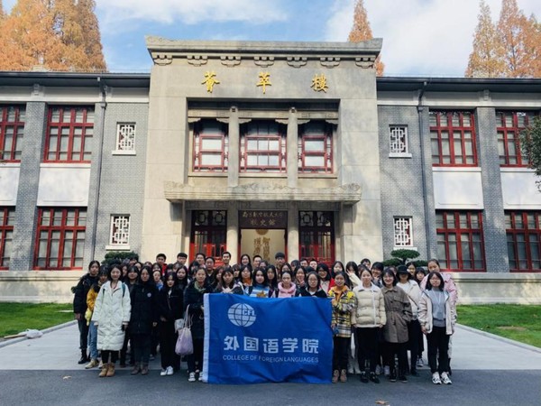 12月8日,为进一步做好新生教育,引导学生了解学校历史、激发爱校热情,由辅导员盛嘉贤带队,外国语学院2019级本科生集体前往校史馆开展爱校荣校教育活动。