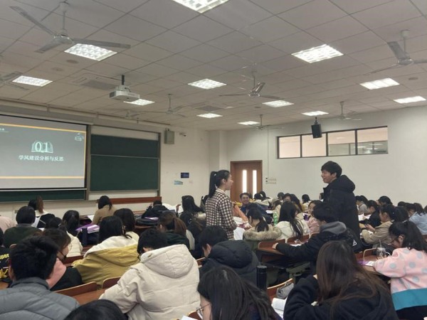 12月10日中午,外国语学院2018级本科生考风考纪诚信教育主题年级会在D3215教室召开。会议围绕学风建设、相关制度建设和考风考纪诚信教育展开,由辅导员盛嘉贤主持,2018级本科生全体参与。