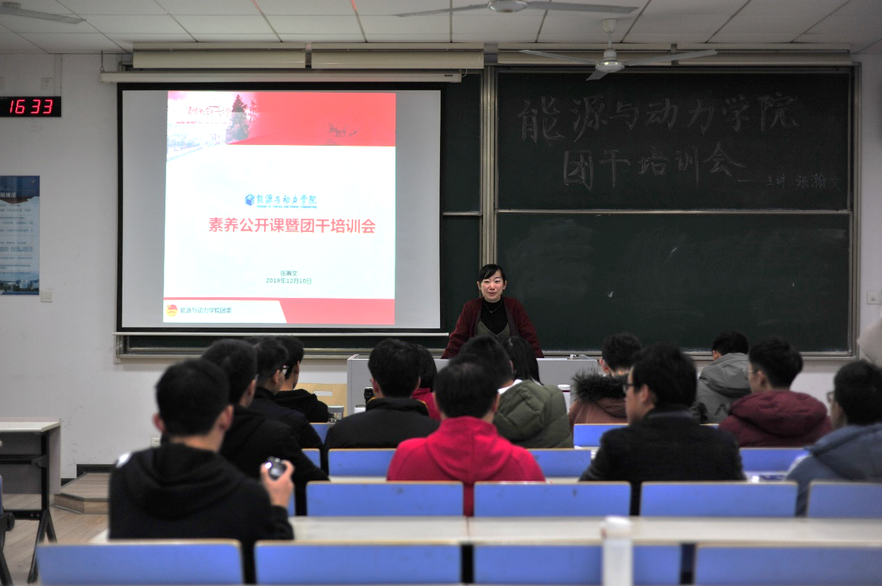 12月10日,能源与动力学院在将军路校区D1110教室举办素养公开课暨团干培训会。能源与动力学院团委书记张瀚文,2018级和2019级全体本科生团支书共同参加。课程由张瀚文主讲。