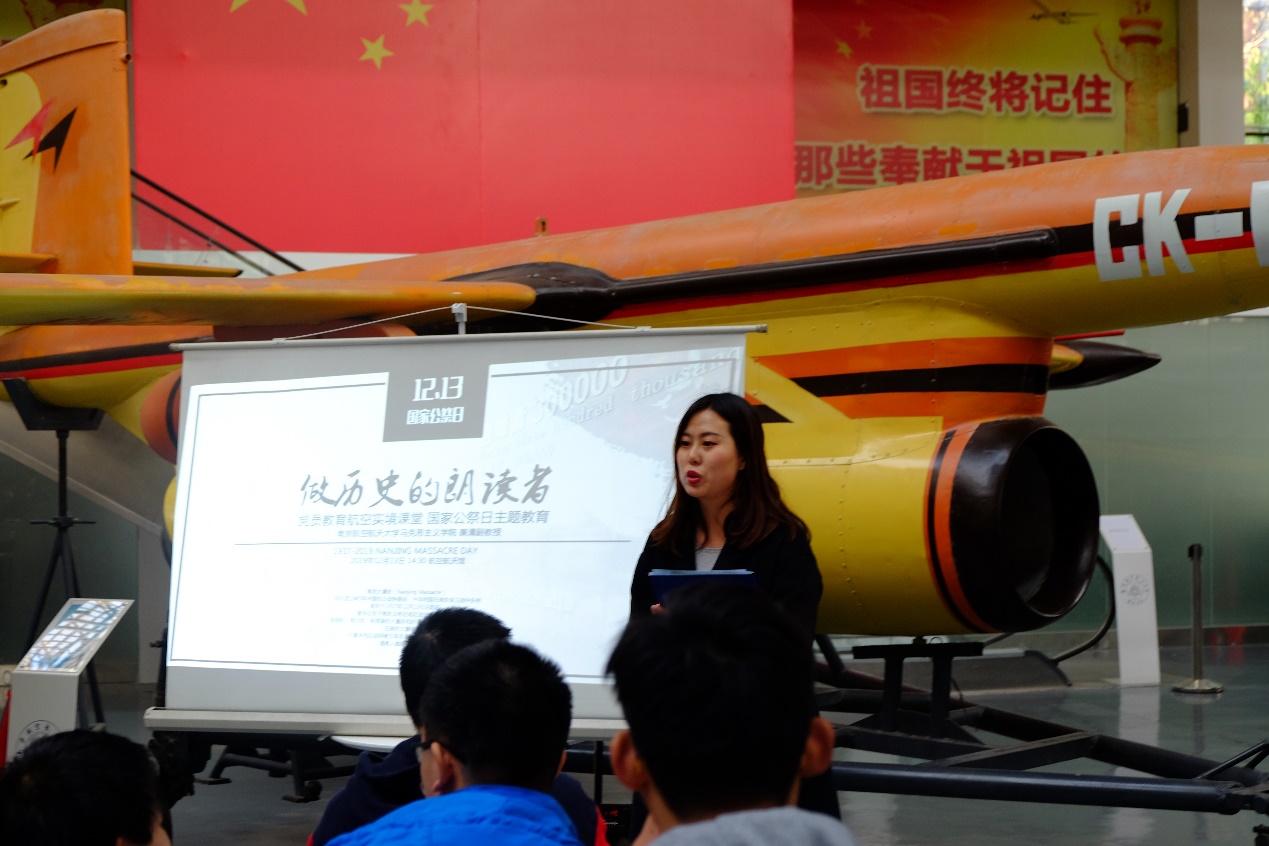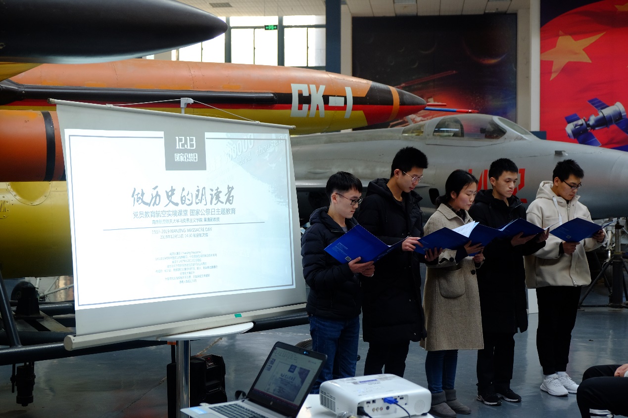 12月13日下午,时值第六个南京大屠杀死难者国家公祭日,航空学院学生党总支于航空航天馆开展了“做历史的朗读者”国家公祭日主题教育暨党员教育航空实境课堂。马克思主义学院廉清副教授为现场40余名预备党员代表讲述了一堂别开生面的党课《做历史的朗读者,新时代的书写者》。