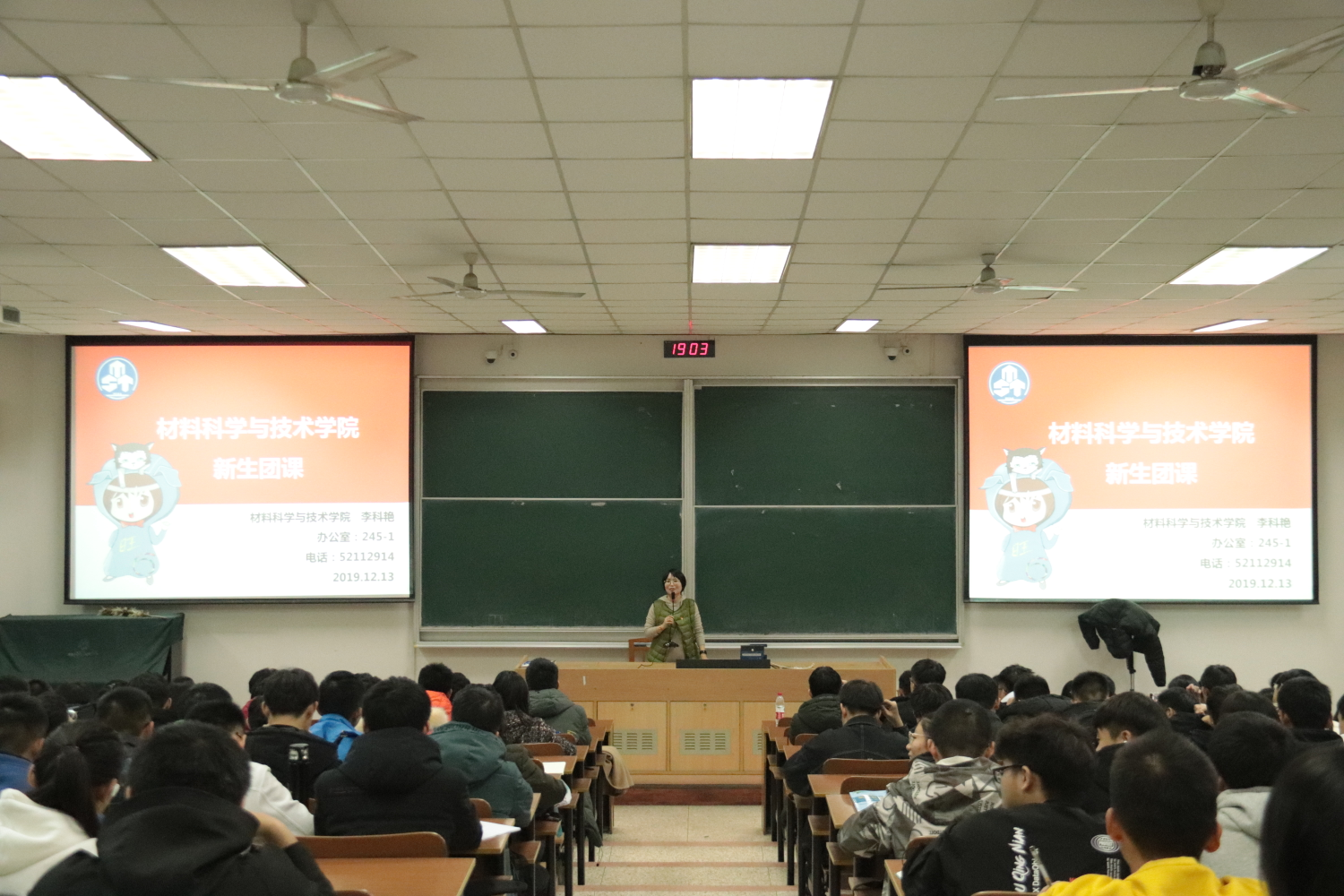12月13日,材料科学与技术学院一二·九主题新生团课在4301开讲。材料科学与技术学院团委书记李科艳,2019级辅导员张进鹏以及2019级全体同学共同参加了本次团课。