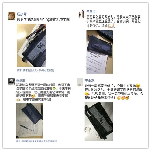 值得一提的是,在收到学院的慰问品后,同学们也纷纷在社交网络发表对学院关怀的感谢,表示学院此举让他们感觉到机电学院大家庭的温暖和支持。