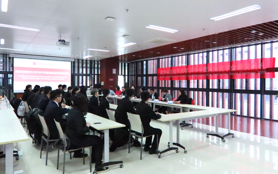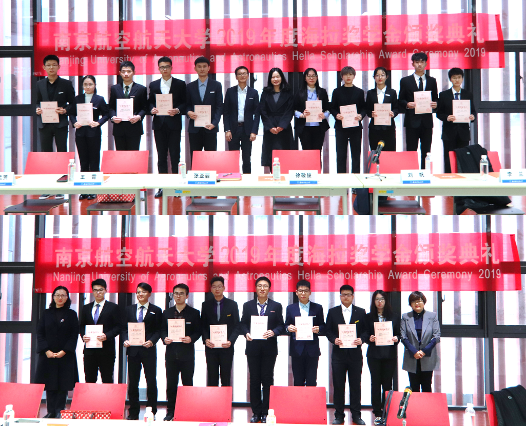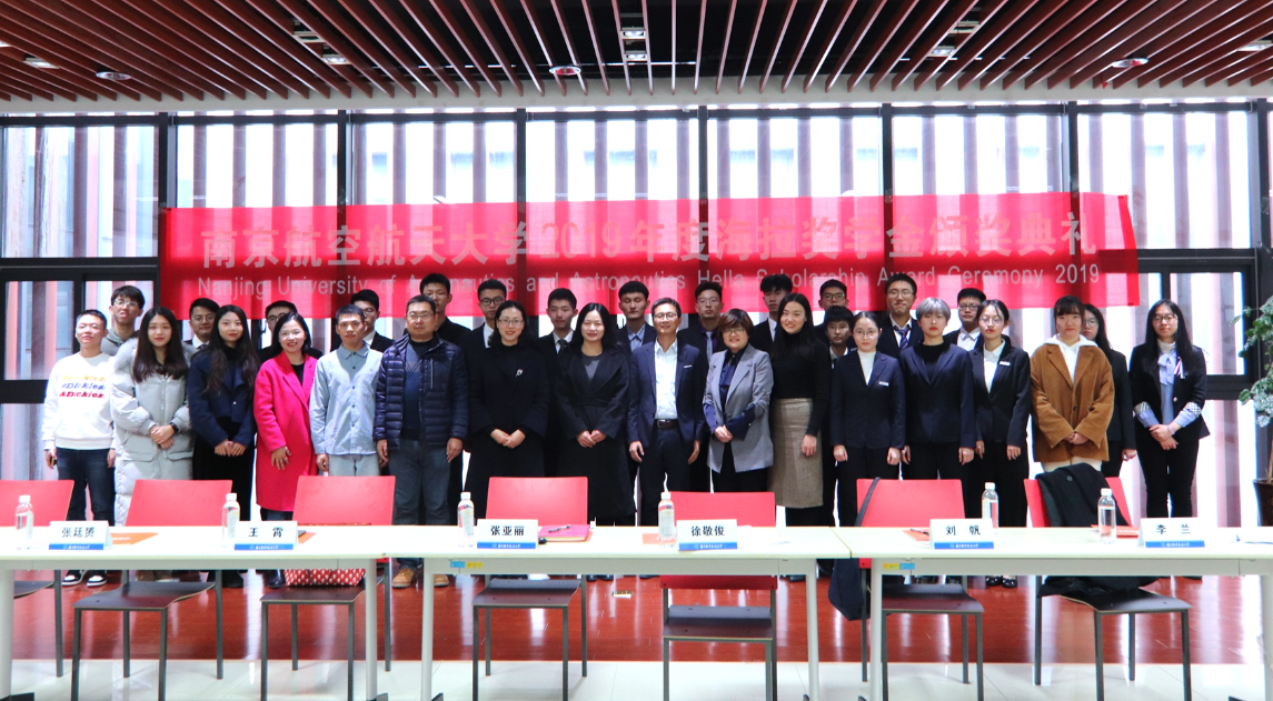 12月20日下午,南京航空航天大学2019年度海拉奖学金颁奖典礼在将军路校区图书馆6楼读者活动中心举办。海拉公司新产品开发经理徐敬俊、人事经理刘帆、高级人力资源主管李兰,我校学生处副处长张亚丽、能源与动力学院党委副书记王霄、研究生院研究生教育管理处副处长张廷赟、学生处学生资助管理中心陈华华,以及相关学院资助干事、学生辅导员、本年度海拉奖学金全体获奖学生共同参加颁奖典礼。本次典礼由我校学生处主办,能源与动力学院承办,由能源与动力学院本科生辅导员孙明智主持。