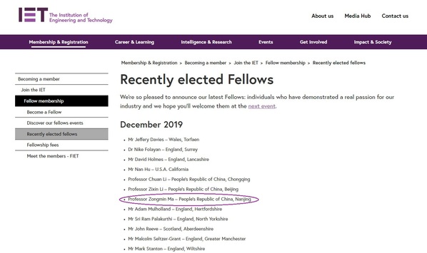 近日,经英国工程技术学会(IET,The Institution of Engineering and Technology)批准,我校计算机科学与技术学院/人工智能学院马宗民教授当选为IET Fellow (英国工程技术学会会士)。IET的会员类型分为荣誉会士、会士、专业会员、普通会员和学生会员。IET会士(IET Fellow)是IET学会的最高学术荣誉,授予在全球科学与工程技术领域展示出高度责任感并取得重要成就的杰出学者及专业技术人员。每年IET遴选约200名IET Fellow,其中中国内地入选者10-20名。