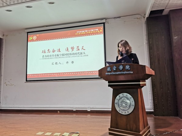 12月27日,中共南京航空航天大学航空学院学生总支部第三次党员代表大会在明故宫校区A18号楼529报告厅举行。学院党委书记冯绍红同志,学院党委副书记、学生党总支书记许静同志,航空学院组织员、各年级辅导员以及学生党员代表共128人参加了大会。会议由航空学院团委书记韩楚主持。