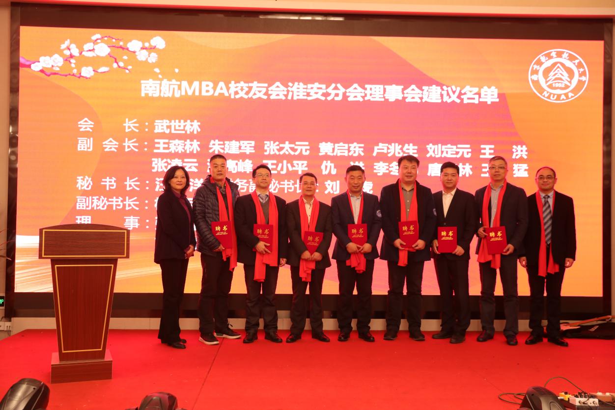 12月28日,我校MBA校友会淮安分会成立大会在淮安成功召开。淮安市教育局局长张元贵,淮安市人力资源与社会保障局副局长王乃岩,淮安市人才中心主任陈朝晖,淮安市就业管理中心副主任刘兆尚,淮安天士力药业副总经理杨国军,万香科技股份有限公司副总经理陈兆钢,淮安经济开发区热电有限公司常务副总经理张德善,淮安柴米河农业科技股份有限公司王其传,南航党政办/发展联络部副部长、校友总会副秘书长张钟勤,经济与管理学院副院长王子龙,党政办/发展联络部校友会办公室主任单晶,MBA教育中心执行主任、南航MBA校友会秘书长杜刚,MBA教育中心学生工作与职业发展办公室主管祝少琪,经管院校友工作秘书许志卓以及淮安各界200多位校友代表欢聚一堂,共同庆祝南航MBA校友会淮安分会的成立。