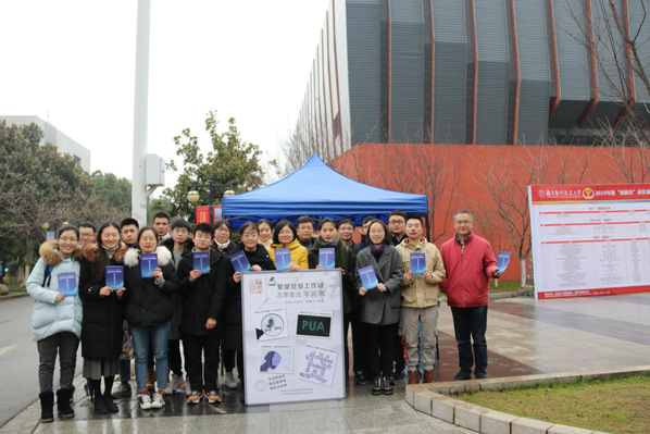 “可以拿一本宣传手册看看吗?”一位路过的同学问在场的志愿者。在桌子上摆放的是整齐的蓝色封面的《普法案例宣传手册》,12月30日中午11点,为了响应“不忘初心、牢记使命”主题教育的号召,人文学院法律系教职工党支部的教师们与本科生党支部的同学们走到校园路口,在学校东区体育馆前开展了如火如荼的普法活动。