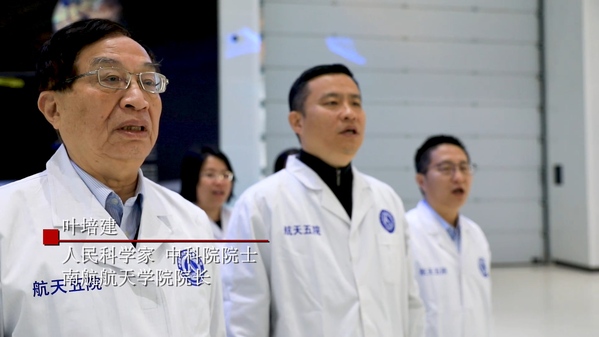 在我校航空航天馆,“八一勋章”获得者、最美奋斗者、南航79级校友李中华带领我校民航/飞行学院的飞行学员,一同高唱。在北京航天五院,人民科学家、我校航天学院院长叶培建院士带领嫦娥四号探测器总设计师、我校88级校友孙泽洲,北斗三号卫星总设计师、南航86级校友陈忠贵等南航校友,在嫦娥四号探测器模型前,高声歌唱《我的祖国》,并通过北斗卫星,向全球南航校友发起了大合唱的邀请。