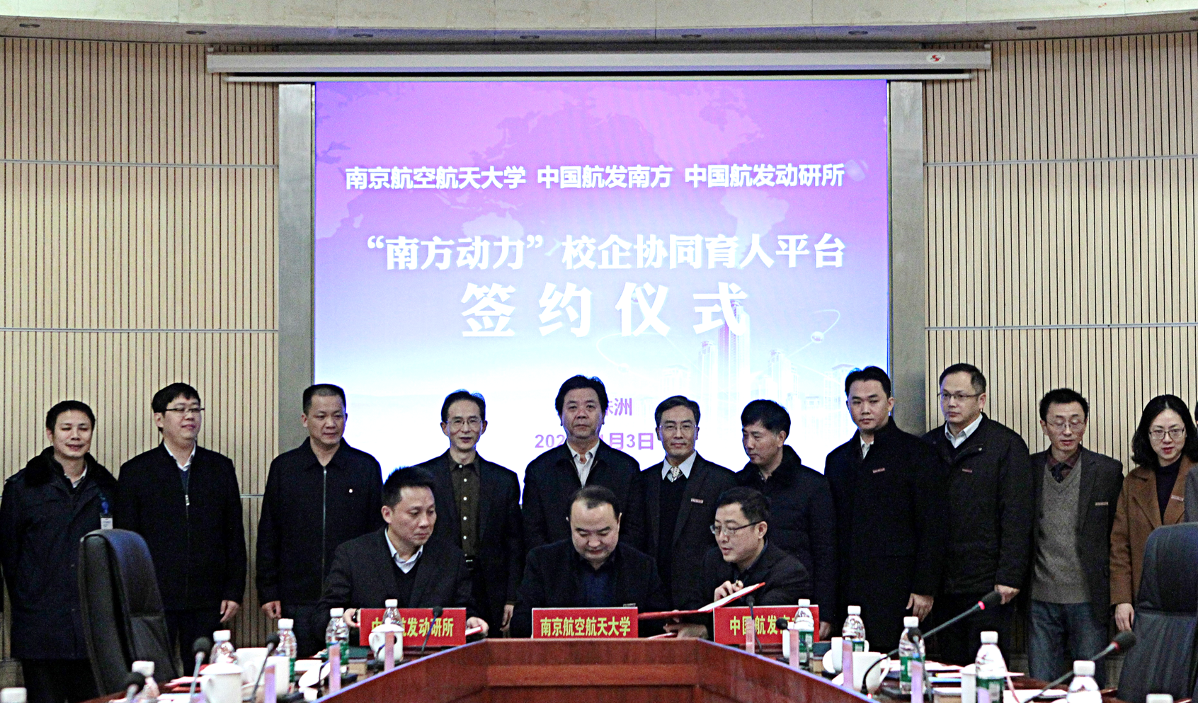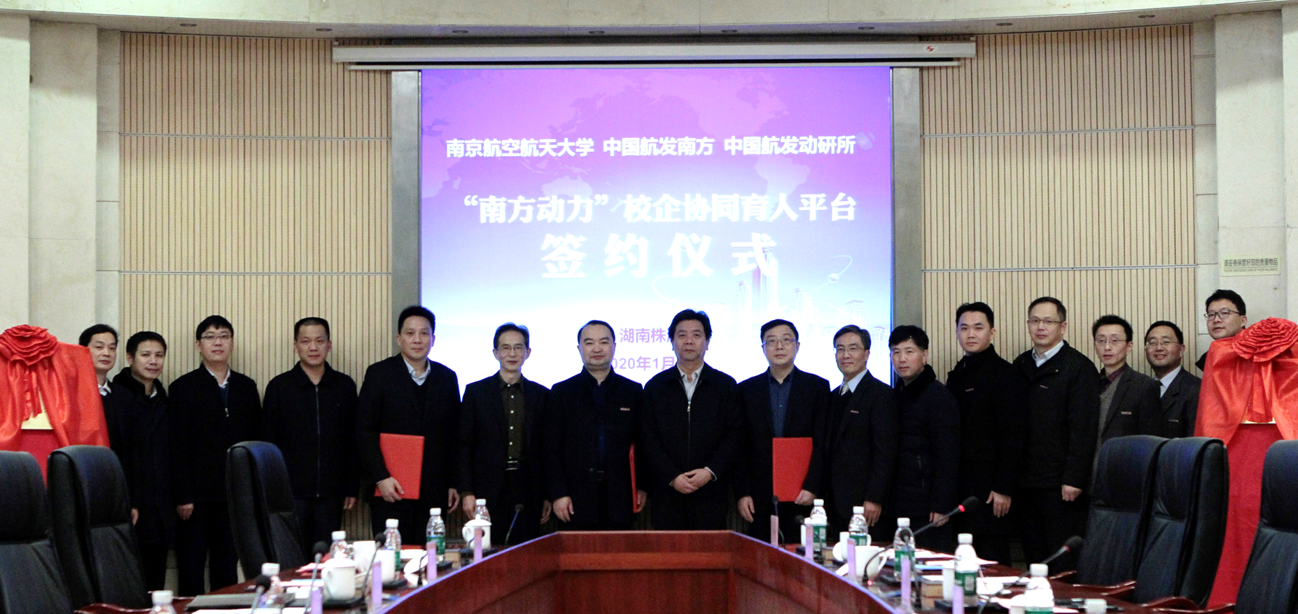 2020年1月3日,我校与中国航发南方工业有限公司(以下简称“331厂”)、中国航发湖南动力机械研究所(以下简称“608所”)三方共建的“南方动力”校企协同育人平台签约暨揭牌仪式在株洲举行。331厂党委书记、执行董事彭建武,331厂党委副书记、工会主席唐宏伟,608所党委书记、副所长缪仲明,608所副所长梅庆以及我校党委副书记陶勇出席仪式,我校教务处、学生处、研究生院和能源与动力学院负责同志,以及两家单位职能部门的主要领导共计30余人参加此次活动。签约暨揭牌仪式由我校能源与动力学院院长崔海涛主持。