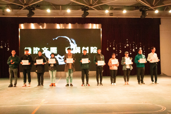 经过教师评分和线上投票两种方式的角逐,有六个寝室的对联脱颖而出。在学院元旦晚会的现场上,材料科学与技术学院核技术系负责人常树全老师为获奖寝室及撰写对联的同学颁奖,李昊勃同学泼墨挥毫,当场书写了“回眸万世聚材院,翱翔九天振南航”,向全年级同学展示了书法的魅力,博得了老师与同学们的阵阵喝彩。