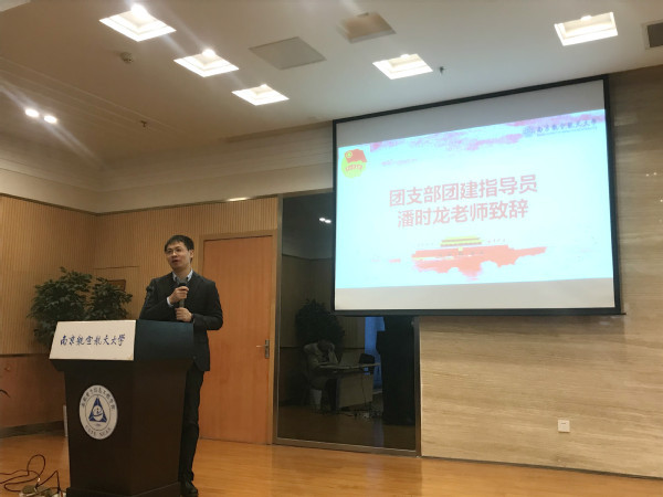 随后,潘时龙在致辞中指出,这是学院也是学校第一个纵向团支部,希望团支部能将科研与团支部建设有机结合起来,实现以团建带科研,科研促团建的有效机制。同时他强调要严肃支部纪律,加强思想政治工作,把思想政治工作贯穿所开展的全部工作;带领实验室同学积极作为;团支部要抓好团员教育,不断提高团员素质,团支部要积极投身推进校风、学风和校园文化建设,争取为促进学院、学校精神文明建设及学风建设贡献一份力量。