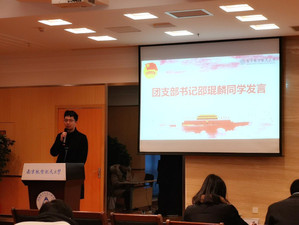 团支部书记邵琨麟进行了发言,邵琨麟代表新一届团支部,对党组织和全体团员表示了感谢。他表示,成为团支部的一员,能有机会为团的工作尽一份自己的力量,我们深感荣幸。同时,更感到是一种责任,微波光子学实验室研究生团支部有50多位团员,如何发挥每位团员的潜力,创造性地开展团的工作,我们任重道远。