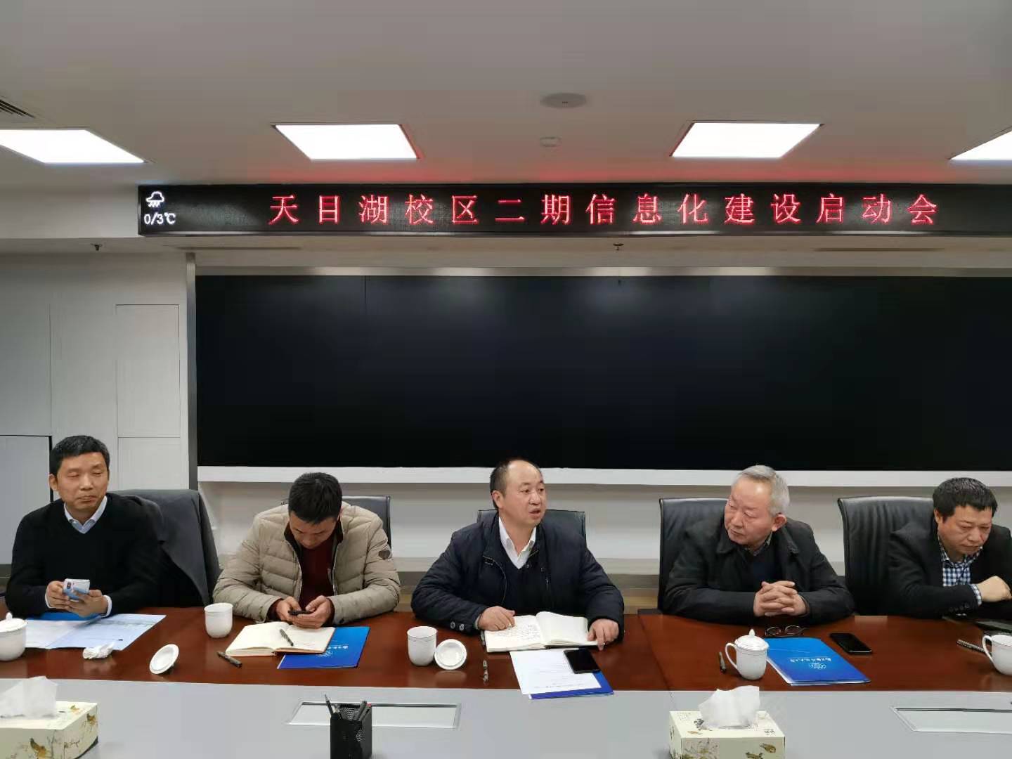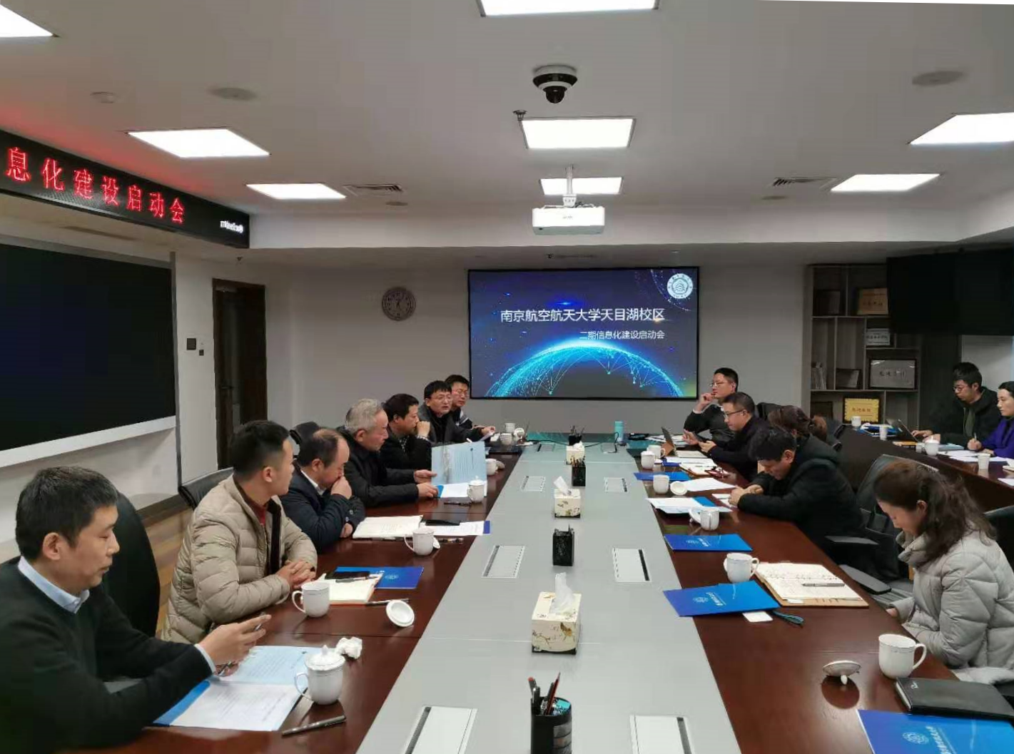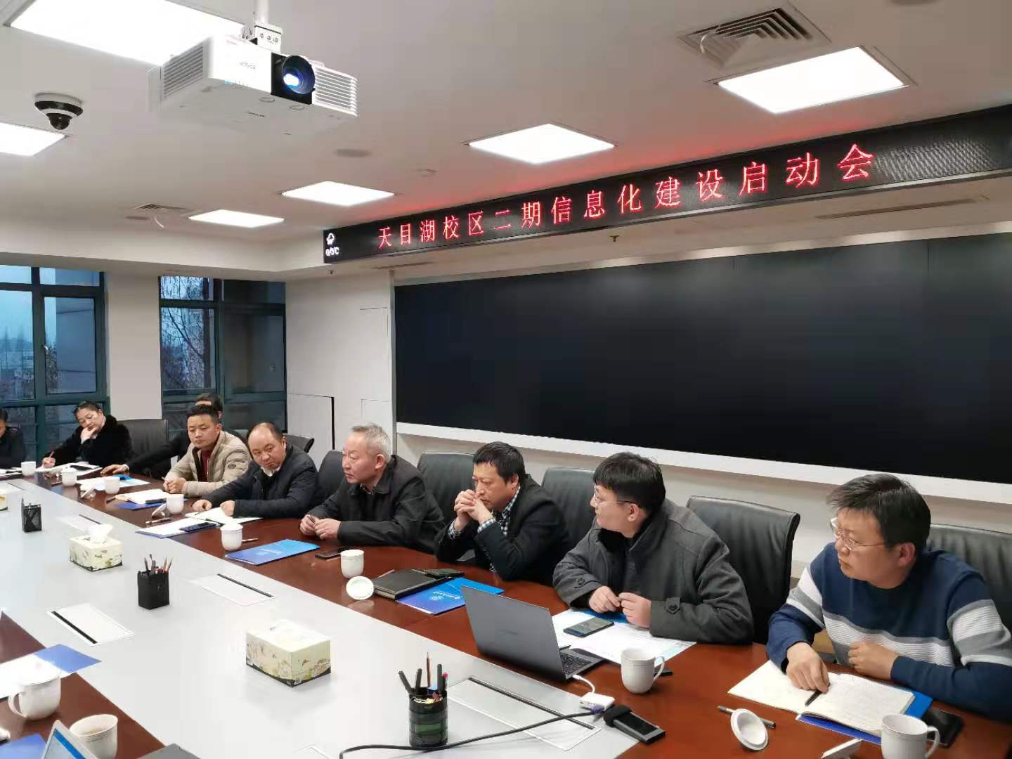 1月9日下午,我校天目湖校区二期信息化建设启动会在明故宫校区综合楼720会议室召开。天目湖校区规划与建设办公室主任江波、信息化处长袁家斌、溧阳长荡湖公司副总经理芮红娟、中国电信股份有限公司溧阳分公司刘军军以及学校相关部门、学院负责人出席会议,共同研讨我校天目湖校区信息化规划与建设工作。会议由信息化处副处长刘勇主持。