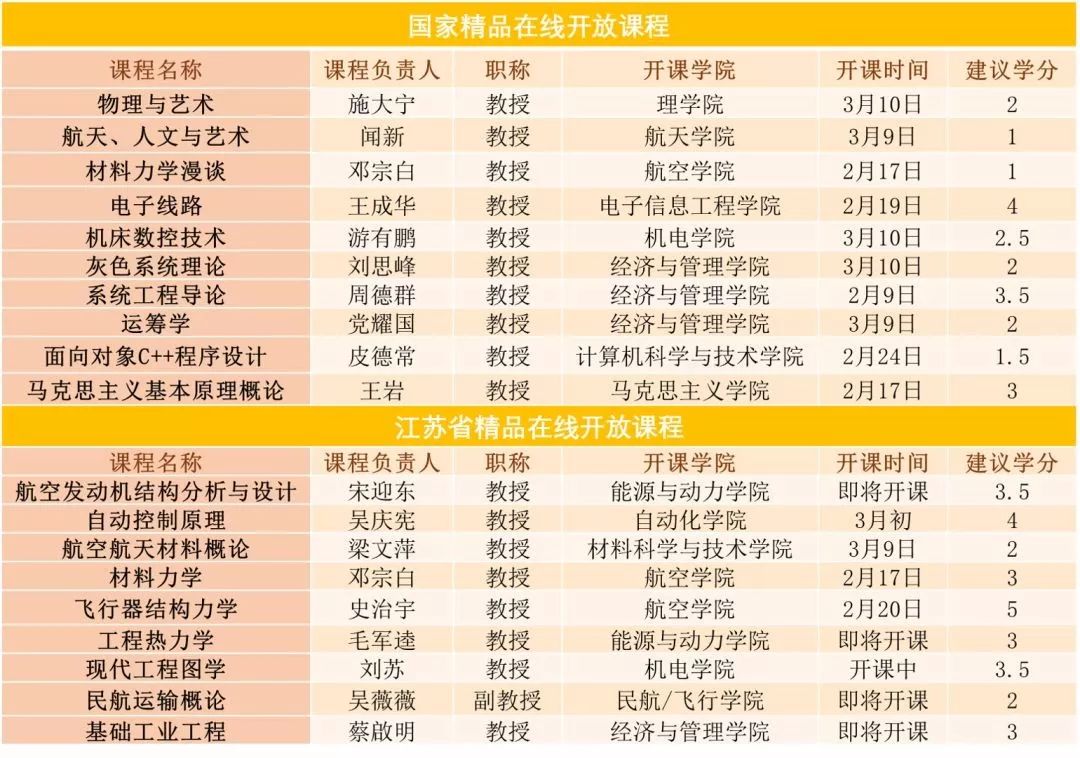 面对严峻疫情,我校集中校内优质教学资源,在爱课程(中国大学MOOC)平台上向高校师生和社会公众开放学校精品在线开放课程,让学生足不出户,在家也能有进步!让我们携手前行,共克时艰!此次开放的课程均为南京航空航天大学国家级和江苏省精品在线开放课程,由长期在教学科研一线工作的教师精心制作。其中既包括《物理与艺术》、《航天、人文与艺术》这样文理交融的素质类教育课程,也包括《面向对象C++程序设计》、《航空航天材料概论》这样的热门科技类课程,还有《电子线路》、《灰色系统理论》这样的专业核心课程。在做好疫情防控工作的同时,也亲身践行“终身学习”的理念!