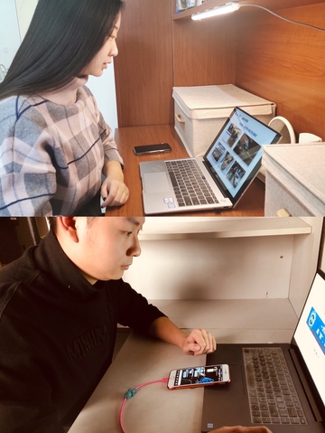 辅导员代澔丛、于子洋在宿舍召开线上年级会
