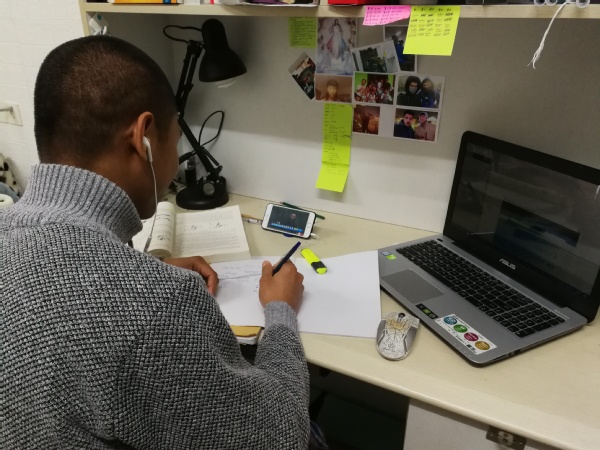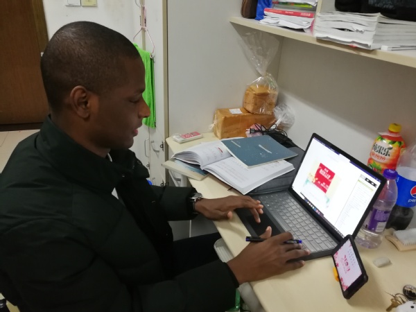 来自东帝汶的克日色同学这次假期没有回国,他相信中国一定会很快战疫成功,他在学校很安心。收到网课通知后,中文比较好的他还主动协助联系回国学生,教班级同学使用学习通等工具。今天他正在线学习《工程力学》课程,一边听课一边在自己的笔记本上做记录。他表示老师在线授课的水准很高,学习起来颇有兴趣,虽然是在宿舍学习,他也会给自己制定合理的学习时间和学习目标。