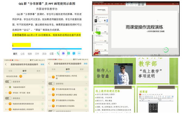 开学前,学院教师在疫情面前克服诸多困难,积极投身到“停课不停学”的在线教学准备中。院党政领导高度重视,合力部署,学院组织QQ分享屏幕和PPT画笔使用实操,组织骨干教师通过录屏等方式讲解技能,各系部也广泛培训动员,老师之间取长补短,交流经验。学院向师生发放调查问卷,收集大量数据,全面掌握师生双方对于开课的准备情况。