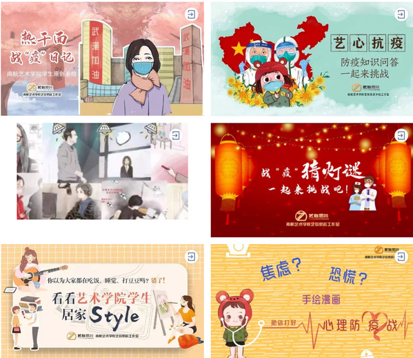 在此次疫情期间,艺致思政工作室成员在老师的指导下,积极响应“艺心抗疫”倡议,发挥专业所长,创作出品了原创手绘作品《热干面战“疫”日记》《原创歌曲<我说>致敬白衣天使》《手绘漫画助你打好心理防疫战》等作品。工作室与新华社、安徽卫视等多家媒体开展了相关合作,多部作品获得校内外媒体转载。