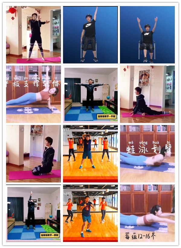 为阻断疫情向校园蔓延,确保师生生命安全和身体健康,体育部自觉响应学校号召,积极行动,全力投入战“疫”行动。体育部自身优势和作用,研讨特殊时期体育教学模式,组织老师们编排、录制、制作了《实用椅子操》、《抗疫健身操》、《无器械力量练习》、《飞行员旋转练习》和《舒展筋骨、拉伸身体》、《常见运动损伤的预防及处理方法》七期适合居家健身的学习视频,指导全校师生科学健身,增强自身免疫力,为战胜疫情贡献体育部力量。
