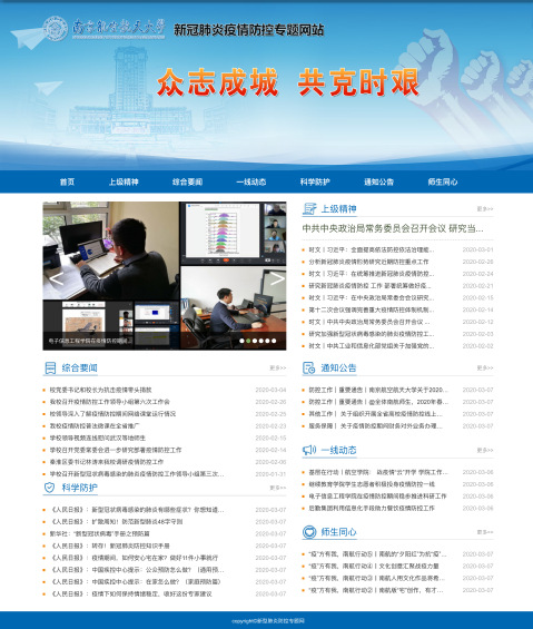 为进一步做好疫情防控相关工作,学校正式开通新冠肺炎疫情防控专题网站(http://yqfk.nuaa.edu.cn/)。