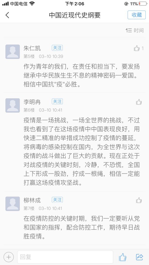 师生们纷纷表示,这是一堂特殊时期意义非凡的思政大课,也是一堂有深度、有温度的“思政大课”。王智老师的毛概班级吴星雨同学通过超星平台留言:“这次疫情,带给我感动与震撼的,就是我们这个民族、这个国家源源不断、兴盛无比的生命力。黔首怀志、匹夫报国,每一次灾难,每一次磨炼,都会从亿万国人中涌现出无数的战士。捐躯赴国难、视死忽如归,这是写在中国人骨子里的崇高精神!”