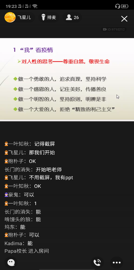 同学们通过各种媒介积极参与“线上”主题班会