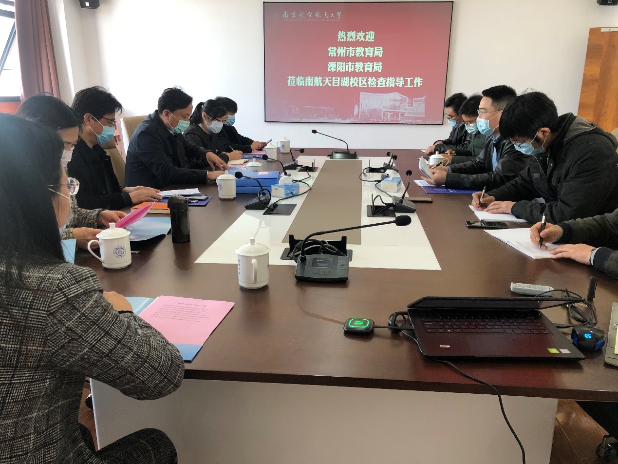3月17日,常州市教育局副局长纪忠一行7人,来天目湖校区调研检查新型冠状病毒感染的肺炎疫情防控工作。天目湖校区管委会副主任缪长宗以及保卫处、校医院、后勤集团、民航/飞行学院等驻区单位负责人接待了调研组一行。
