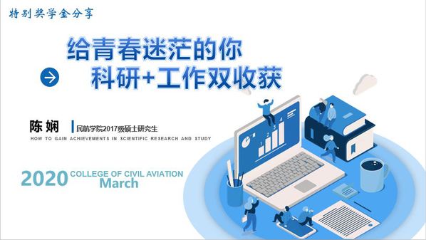 为帮助同学们了解研究生评优评奖规则,找准未来发展方向,民航学院研究生于3月21日下午14时在线上举办研究生特奖经验分享会。本次活动邀请2019年度研究生特奖获得者郑海龙和陈娴两位同学担任嘉宾,30余位研究生参加本次活动。