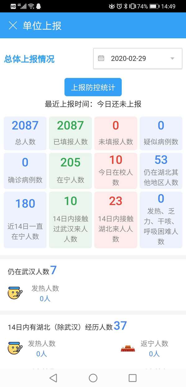 疫情防控小组每日督促校对学院2087名师生的健康打卡,对于疫情严重地区的师生日日关怀,第一时间排查疫情防控数据异常的情况,疫情防控不得有一丝失误,做到打卡完成率100%的同时,保证数据正确率100%。