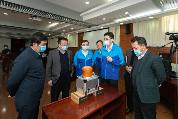 聂宏作总结讲话,他代表学校向叶培建院士、孙泽洲总师及试验队全体成员表示衷心的感谢。他指出,这次项目研制任务不同以往,对学校航天学科发展而言是重要的契机。全体队员克服时间紧、任务重的困难,殚精竭虑,很好地发扬了航天精神。他认为火星信标项目弘扬了学校的正气、豪气、大气。最后,聂宏殷切嘱托全体队员关注产品质量安全,关注个人的健康和安全,一定要不负重托圆满完成这次任务。仪式在嘹亮的校歌声中结束,会后校领导在现场参观了火星应急信标装置的鉴定件,听取了试验队长王寅的详细介绍。