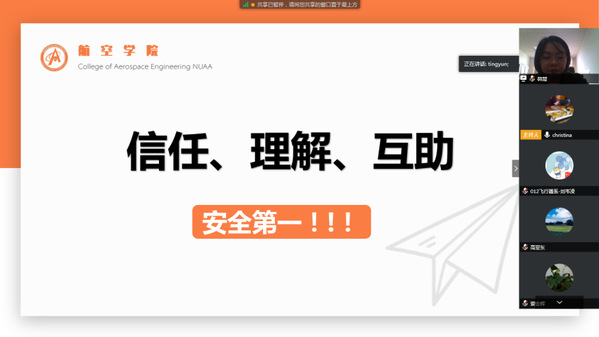 在会议上,韩楚一再强调,学院和同学们之间的信任、理解、互助是非常重要的,希望学生骨干们同心戮力,配合辅导员老师共同做好返校相关工作。航空学院的全体老师,会在春暖花开的校园里等待同学们的平安归来。
