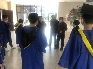 4月23日,电子信息工程学院迎来2020年春学期首批返校的硕士毕业生。4月24日下午,学院党委书记聂东林,党委副书记黄彬,副院长雷磊、刘伟强走访返校的毕业班学生宿舍,对学生的学习工作情况给予关心,实地考察学生生活情况,并进一步部署返校后的相关工作。学院团委书记徐艳惠,研究生辅导员李萍共同参加。