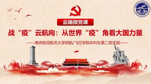 为认真贯彻落实习近平总书记系列重要指示精神,进一步做好疫情防控期间的学生思想教育和价值引领工作,民航学院党委多次召开专题会议,讨论如何在疫情时期创新方式,深挖内涵,把抗击疫情作为生动的教材,开展好线上“云”党课。为构筑党支部疫情防控“思想堡垒”,有效组织学生党员认真学习领会上级和学校疫情防控指示精神,民航/飞行学院各学生党支部与教工党支部联合探索开展专业党支部群建设,借助“互联网+”模式,开展战“疫”云航向专题党课系列活动,努力让每一位党员都能从中有所收获、有所启发、有所成长。