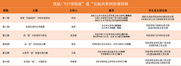 截至学生返校前,战“疫”云航向专题党课围绕抗“疫”期间的责任与担当、民航力量、全球战“疫”等主题,已经开展6期,共700余名党员、积极分子参加,实现党员全覆盖,确保党员理论学习不停摆、联防联控不缺位、引领辐射有作为。