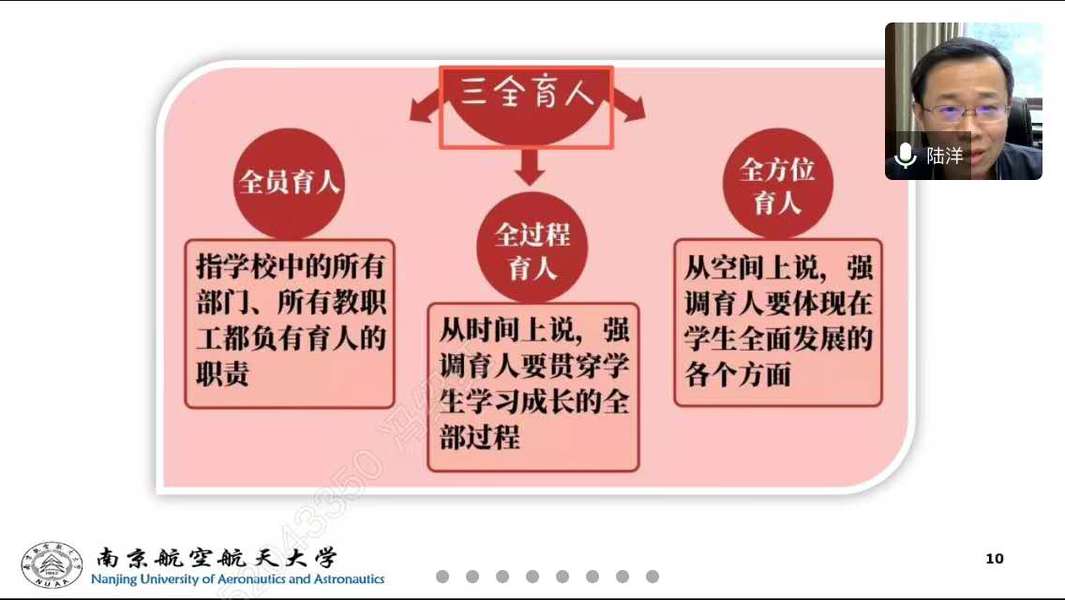 冯绍红总结发言:这是第一次以线上的方式进行例会,为中心交流开拓了新的方式。今后中心将以研讨、课程思政比赛、国内论坛等多种形式深入开展课程思政研究工作,大力推进思政教育与专业教育的融合,希望课程思政的成果走出南航、走向全国。