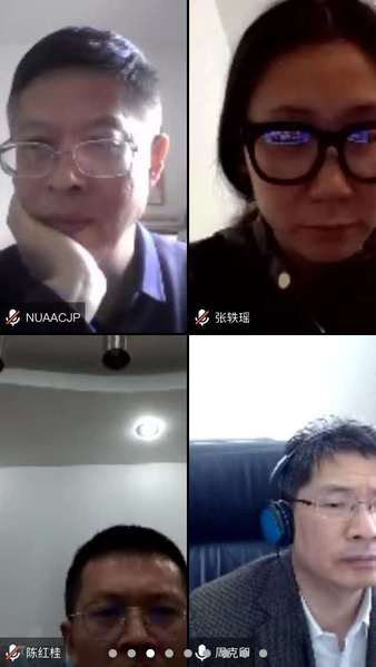 王智、周克印等特邀专家先后对课程思政研究中心的工作给予了点评。王智从亲身经历的武汉疫情出发,向大家分享了此次抗击疫情中可用以思政教育的元素,并建议马克思主义学院和航空学院共同申报相关高级别研究课题。周克印对航空学院大牌教授在专业宣讲中体现的思政教育给予了高度评价,并对目前我校线上教学的情况进行了分析,指出:教师线上教学更应当充实教学内容,将时事与课程相结合。首先要发挥学科优势,提高教学效果,有效开展教学评价;其次,发挥团队优势,使专业教师和思政教师找到更好的结合点;最后,采用多种形式精准有效的实施课程思政。