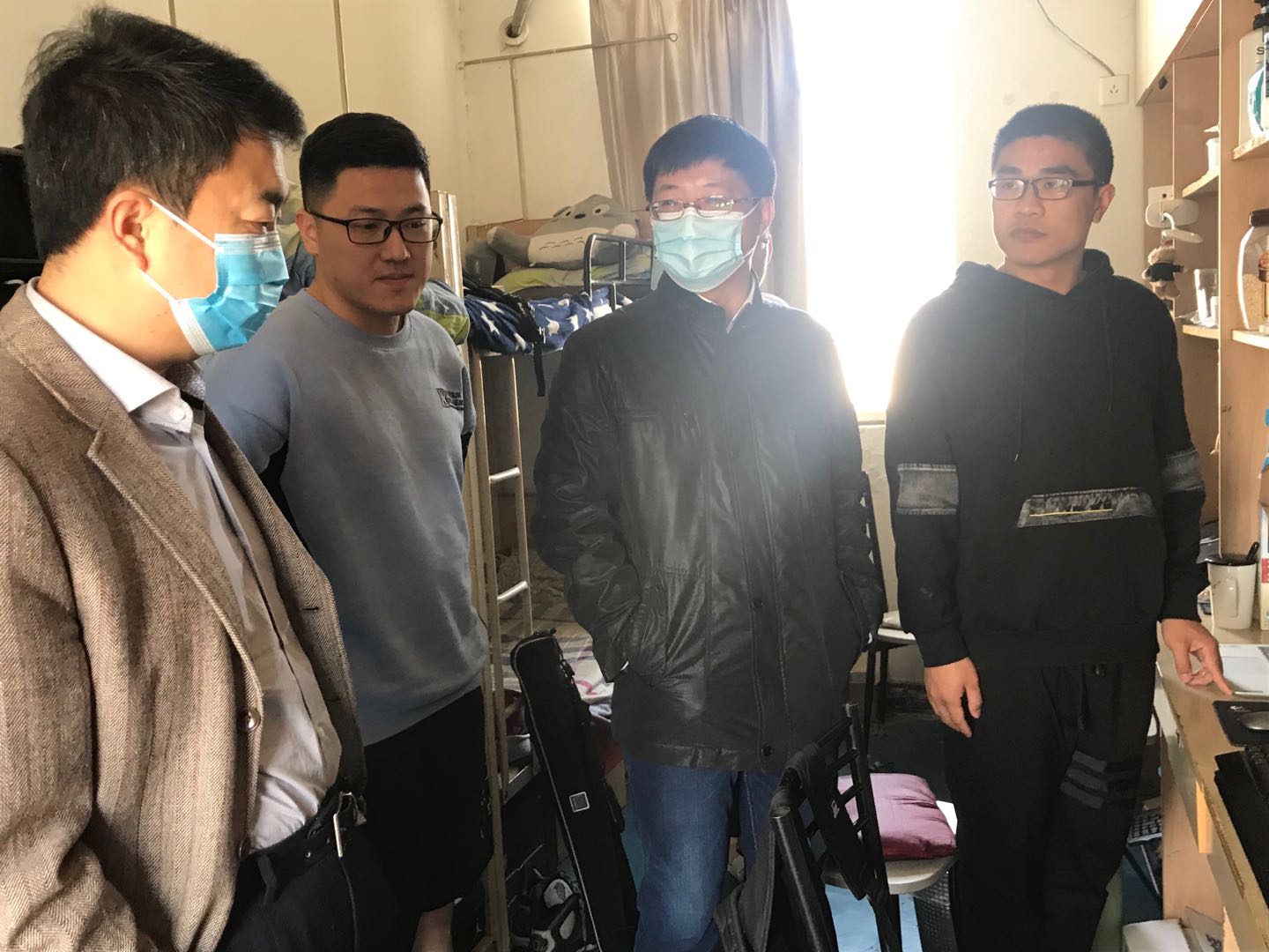 日前,材料科学与技术学院大四毕业班学生已经陆续返校报到,学院高度关注学生返校安全和返校后毕业设计(论文)等学习活动开展情况,4月28日上午,学院党委书记孙占久、院长张校刚、党委副书记许赞及辅导员来到宿舍看望同学们。