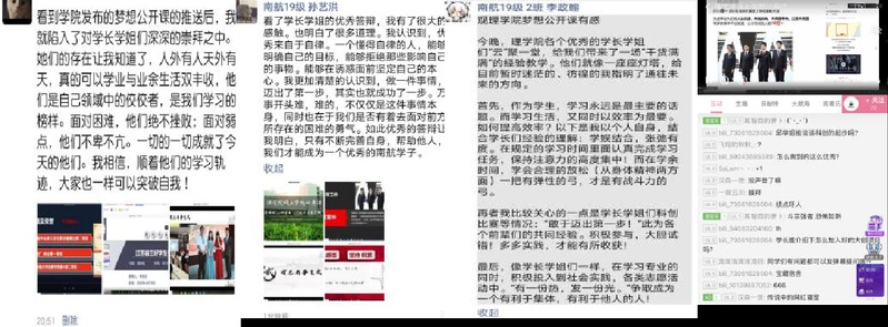 此次线上公开答辩,受到了各年级学生的热烈关注,共计有500人次在线观看直播。同学们在网络平台上发弹幕进行提问,了解到优秀学长、学姐的专属学习方法,纷纷表示要效仿优秀榜样认真学习。还有很多学生在朋友圈写下自己听完答辩后的感想。有同学写道:“今晚,理学院各个优秀的学长学姐们‘云’聚一堂,给我们带来一场干货满满的经验教学。他们就像一座座灯塔,给目前暂时迷茫的、彷徨的我指明了通往未来的方向。”还有的同学写道:“他们的存在让我知道了,人外有人,天外有天,真的可以学业与业余生活双丰收。他们是我们学习的榜样,我相信顺着他们学习的轨迹,大家也一样可以突破自我!”