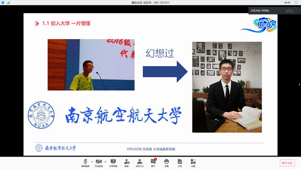 经前期自主申报、资格审核,共有17位同学参与本次答辩。有连续三年绩点年级第一、代表南航摘得国际力学竞赛桂冠的李文轩;有南航第一个以成绩保研的民族生、新疆走出的“天山使者”阿曼古丽•开恩斯;有大二加入郭万林院士课题组、组建学院第一支辩论队的吴奕铭;有热爱学术、勇于钻研,手握6项国家级奖项、3项省级奖项的竞赛达人谢金江;有两度获得国家奖学金和年度特别嘉奖之担当奖,带领班级一路披荆斩棘的“普通班”班长云涛;有以笔记和书籍领略世界、以新闻和采访记录世界,不断突破能力壁垒、拓展知识极限的杨依哲;有怀揣牧星梦,以积累催成长,以坚持铸优秀的飞天梦启航者曾宇航;有志愿服务学生工作角色百变、科创学习都求知若渴的探索者何薇薇;有将无人机科技带入国家自然保护区保护热带雨林,将航空知识科普给700余名中小学生,积极参与科创的王楷铎;有以专业第一的成绩毅然转入航空学院,追梦求真、志愿求达、实践求博、科研求深的朱楠……还有在学生工作方面尽心尽力,立足服务同学的服务者;有走出国门,在国际舞台上展现南航学子风采的追梦人。