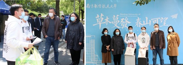 4月23日是2020届硕士毕业生返校的第一天。一大早,学院党委书记刘健荣、院长陈兵、副院长燕雪峰、党委副书记管祎就来到校门口,亲切迎接学生重返校园。学院领导关心询问了学生在路上的情况,为学生送上包含防疫手册、防护口罩、学位服、毕业纪念餐券的暖心大礼包,并叮嘱学生一定要做好防护,合理规划好毕业期间的各项安排,珍惜这段特殊而短暂的毕业时光。