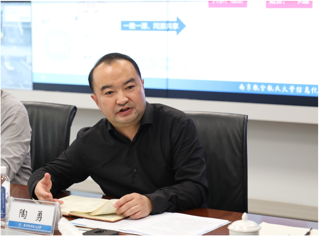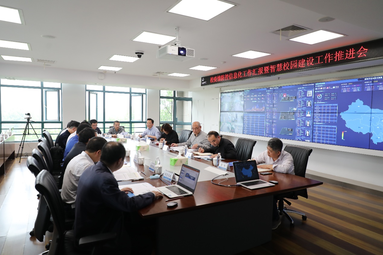 5月8日下午,我校疫情防控信息化工作汇报暨智慧校园建设工作推进会议在明故宫校区综合楼720会议室召开。副校长黄志球,副书记陶勇,党委常委、组织部部长李遥,党委常委、宣传部部长王晖,校长助理、党政办公室主任刘宇雷出席会议。会议由刘宇雷主持。