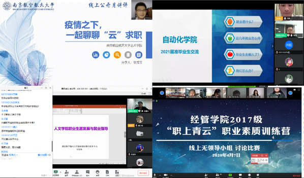 另一方面,组织了多种形式的“云端”就业指导为同学们答疑解忧。早在2月初,校大学生生涯发展教育研究中心就邀请组织校外资深HR和校内全体生涯导师,开通了线上生涯“一对一”视频咨询,提供“全天候”在线生涯指导。引进校外优秀就创业指导网络课程,融合直播、大数据分析等功能,一站式提升学生云端求职就业能力。毕业班辅导员老师们在“哔哩哔哩”等直播平台上当起“网红”,分析行业现状,讲授求职技巧。