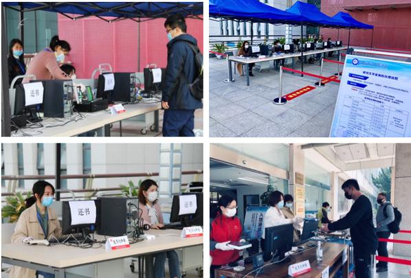 为保证2020届研究生毕业离校的顺利进行,避免人员聚集,图书馆优化研究生离校手续办理流程,简化毕业生学位论文提交程序,细化工作方案,明确超期欠款免赔的措施。学生返校之前,图书馆就相关方案与研究生院及相关学院多次沟通,做好通知提醒,尽量减轻学生负担。离校手续办理期间,图书馆调配专人在两校区馆门口设置集中办理点,张贴醒目引导标识和办理流程,确保每位毕业研究生在图书馆离校手续办理环节上办的快、办的好。