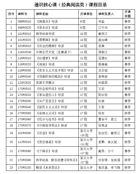 通识核心课程中的经典阅读类模块为首次设立,旨在通过读史读经典,帮助学生在学习经典著作的过程中提高人文素养,涵养人文气质,提升表达和写作能力。教务处在广泛调研其他高校开设的经典阅读类课程和推荐书目的基础上,确定了我校经典阅读类课程推荐范围,并与经济与管理学院、人文社会与科学学院、艺术学院、外国语学院、马克思主义学院进行了反复研讨与沟通,首批设立的23门经典阅读类课程中有20门课为全新打造的课程。各相关学院对经典阅读类新课程的开设提供了大力支持,多位院长亲自承担新建课程任务,开出了《新民主主义论》、《国富论》、《理想国》、《共产党宣言》、《单向度的人》等经典名著的阅读课程。学校还与复旦大学通识教育中心建立了良好合作关系,引进《论语》导读、《资治通鉴》导读等优质课程,采用复旦大学教师和我校教师联合授课的“双师”模式和线上线下混合式教学模式,进一步丰富了我校通识教育尤其是经典阅读类课程资源。