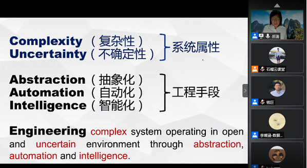 首先,岳涛围绕复杂性、不确定性、抽象化、自动化和智能化五个关键词展开讲述,介绍了GE、IBM和Siemens PLM等国际公司提出的现有数字孪生开发平台,进一步讨论了数字孪生技术所面临的挑战。接着,她系统讲解了其所在的学院实验室Simplexity Lab(简研社)的Simplexity数字孪生学科建设平台的应用领域、关键技术和现有基础,指出数字孪生技术在智能制造、虚拟城市、智慧医疗等领域发展潜能巨大,我们要加快研发基于模型的系统工程MBSE支持的数字孪生开发平台的脚步。